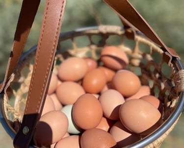 Before a hen lays an egg, she coats it with a natural, waxy, and invisible layer called the "bloom" or cuticle. This bloom seals the shell's pores, keeping bacteria out and moisture in. Unlike commercially processed eggs in the U.S., which are washed and sanitized (removing the bloom and requiring refrigeration), our eggs are left unwashed to preserve this natural protection.