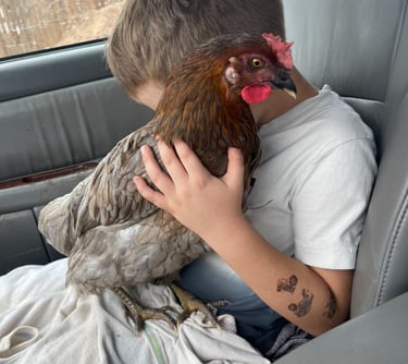 This is one of our hens. She is an Australorp, which has now become one of my favorite breeds. She is the sweetest and quite obsessed with the kids and I. This is the story on how she got her name. When she was a baby chick she began not eating, drinking, or moving at all. Out of fear of her being sick I gave her her own bin and kept the food and water right next to her. Well two weeks past and it was Easter. I went to take care of all the chicks and noticed she was running around her bin wanting to be with the others! Turns out she must have had a broken leg, because in hindsight there was a chicken that got stuck in the corner of their brooder box and I had to carefully remove her. It's amazing how resilient chickens are. So grateful she's here, she brings so much joy and excitement!